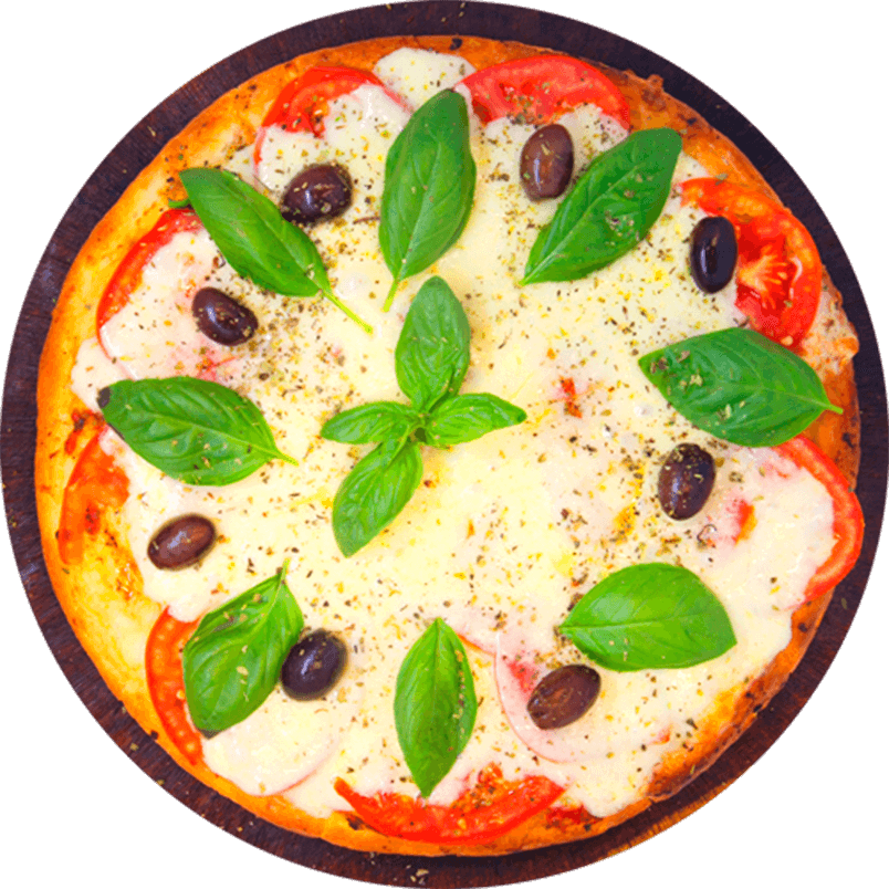 Muzzarella, salsa de tomate, cantimpalo, oregano y aceitunas negras.