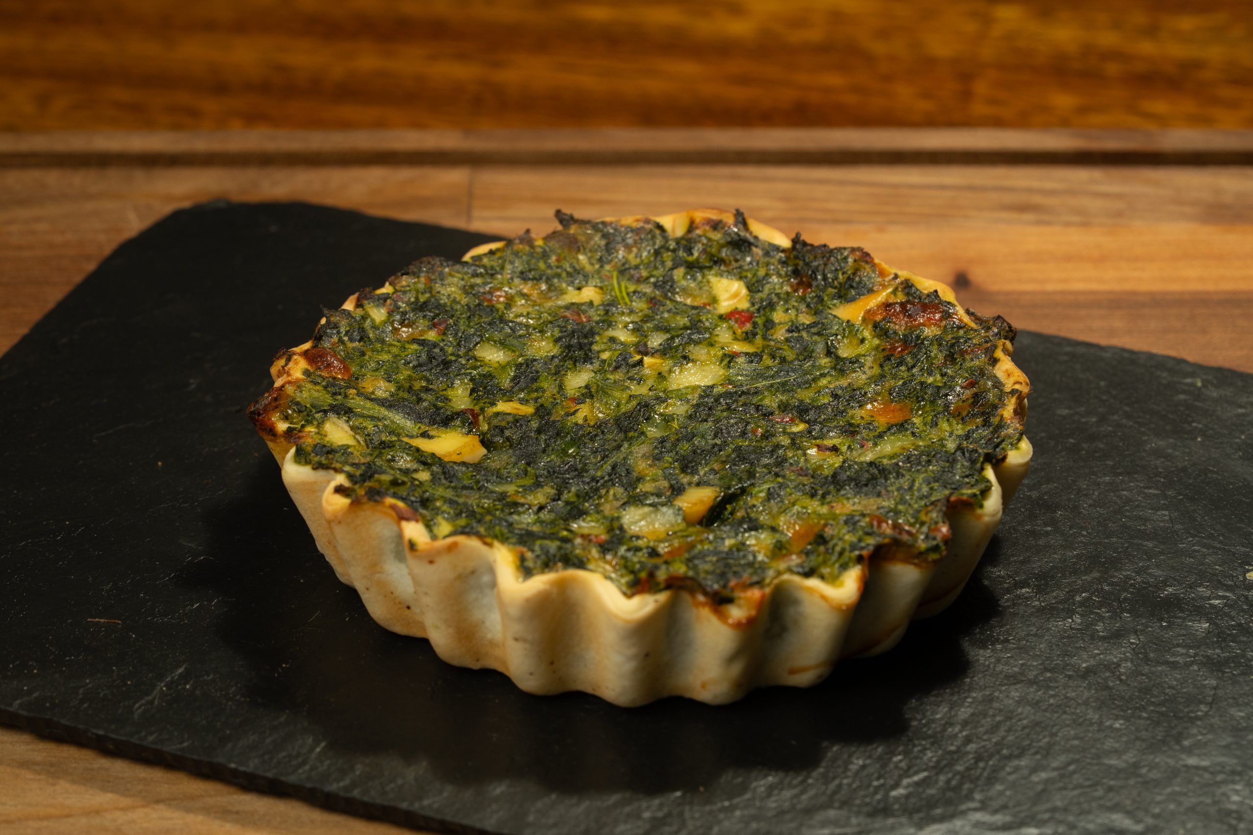 Muzzarella, salsa de tomate, rucula, parmesano, jamon crudo, oregano y aceitunas negras.